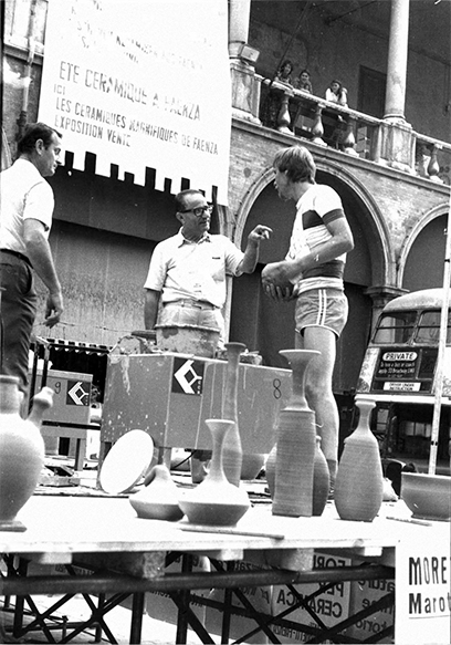 “Ricordo che, e forse questo non risulta dagli atti ma mi è ben chiaro in memoria, che la prima idea fu quella di proporre una legge riferita esclusivamente a Faenza, alla produzione delle sue ceramiche che chiamano “tradizionali”, ma la strada venne subito abbandonata per puntare su quella – e anche questo faceva onore a Faenza e alle sue istituzioni – che riguardasse tutto il mondo ceramico faentino. […] Ne sortì un elaborato al quale lavorammo a lungo con Mario Angelici e Giuseppe Liverani perché la materia era ostica, difficile da tenere unita. Adesso l’iter è concluso. E’ stato lungo, soffertissimo, laboriosissimo ma ci si è arrivati. C’è lo strumento ma, sia ben chiaro, sono da inventare i“suonatori” che si chiamano comitato nazionale ceramico, comitati di disciplinare, enti di tutela, segretariati..” (AD, 1990)