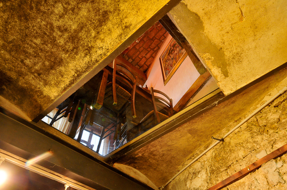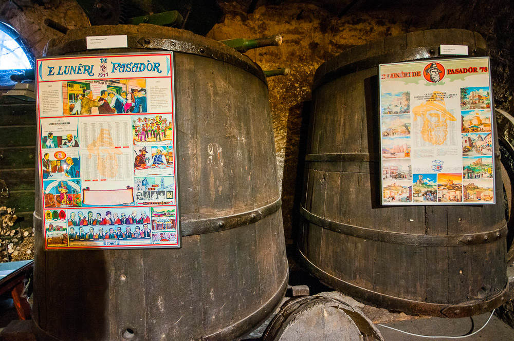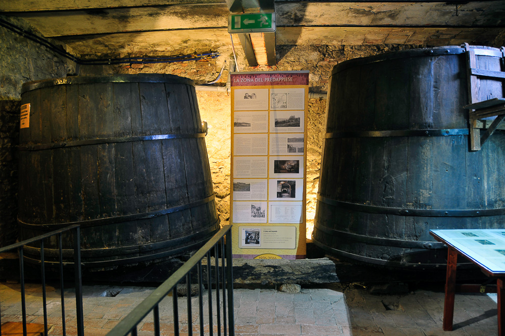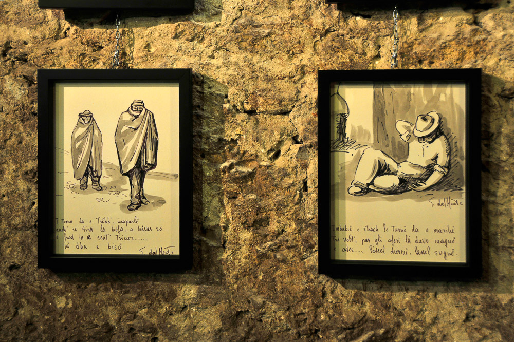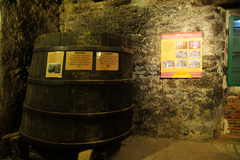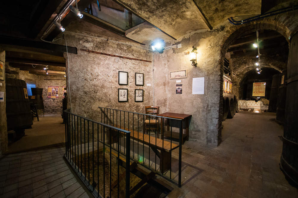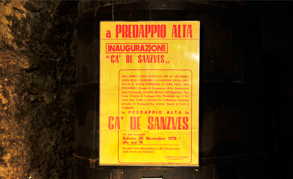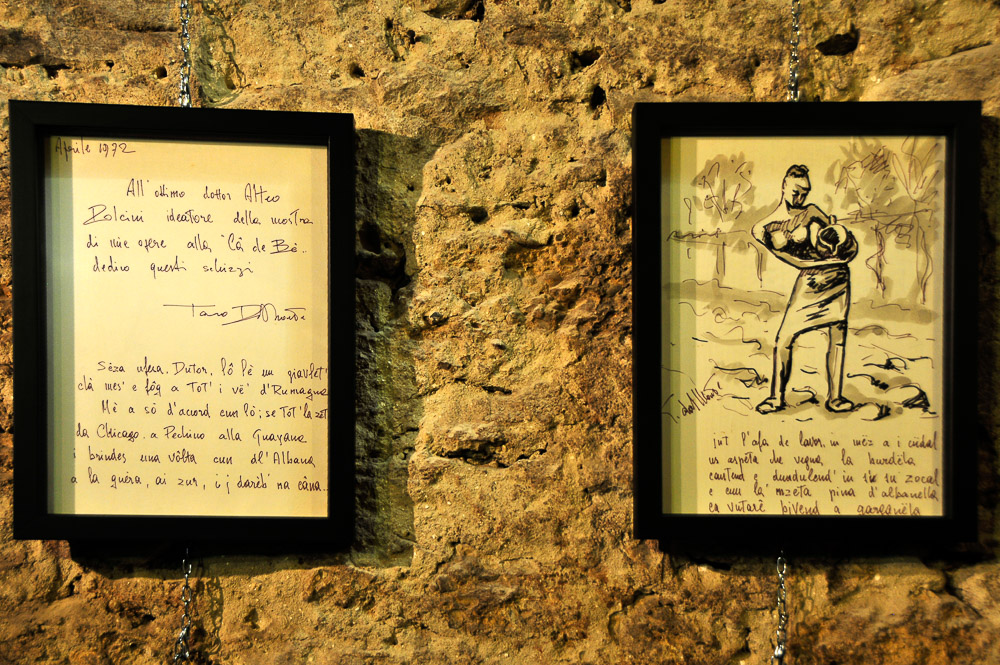 L’allestimento si snoda scendendo negli ambienti centenari delle antiche cantine Zoli, sotto la piazza centrale di Predappio Alta, con ingresso nei locali del ristorante-enoteca “La Vecia Cantena d’là Prè – Ca’ de Sanzves”.