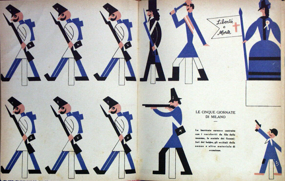 Una selezione forzata che però evidenzia il valore delle collaborazioni offerte da artisti come Domenico Baccarini (img 3), Francesco Nonni (img 4, 5, 6, 7), Ivo Pannaggi, Bruno Angoletta (img 8, 9, 10, 11, 12), Golia (Eugenio Colmo). Beltramelli.