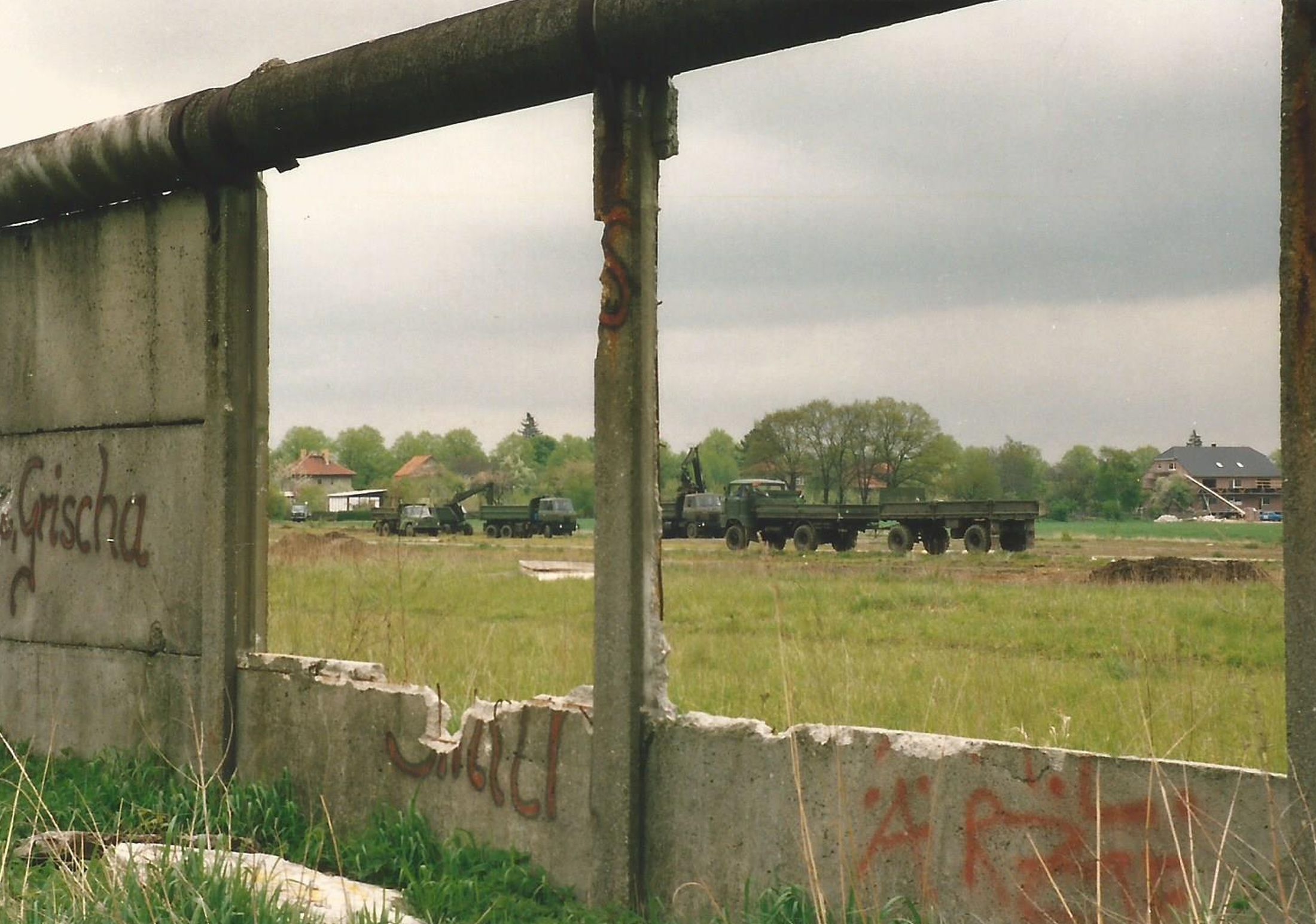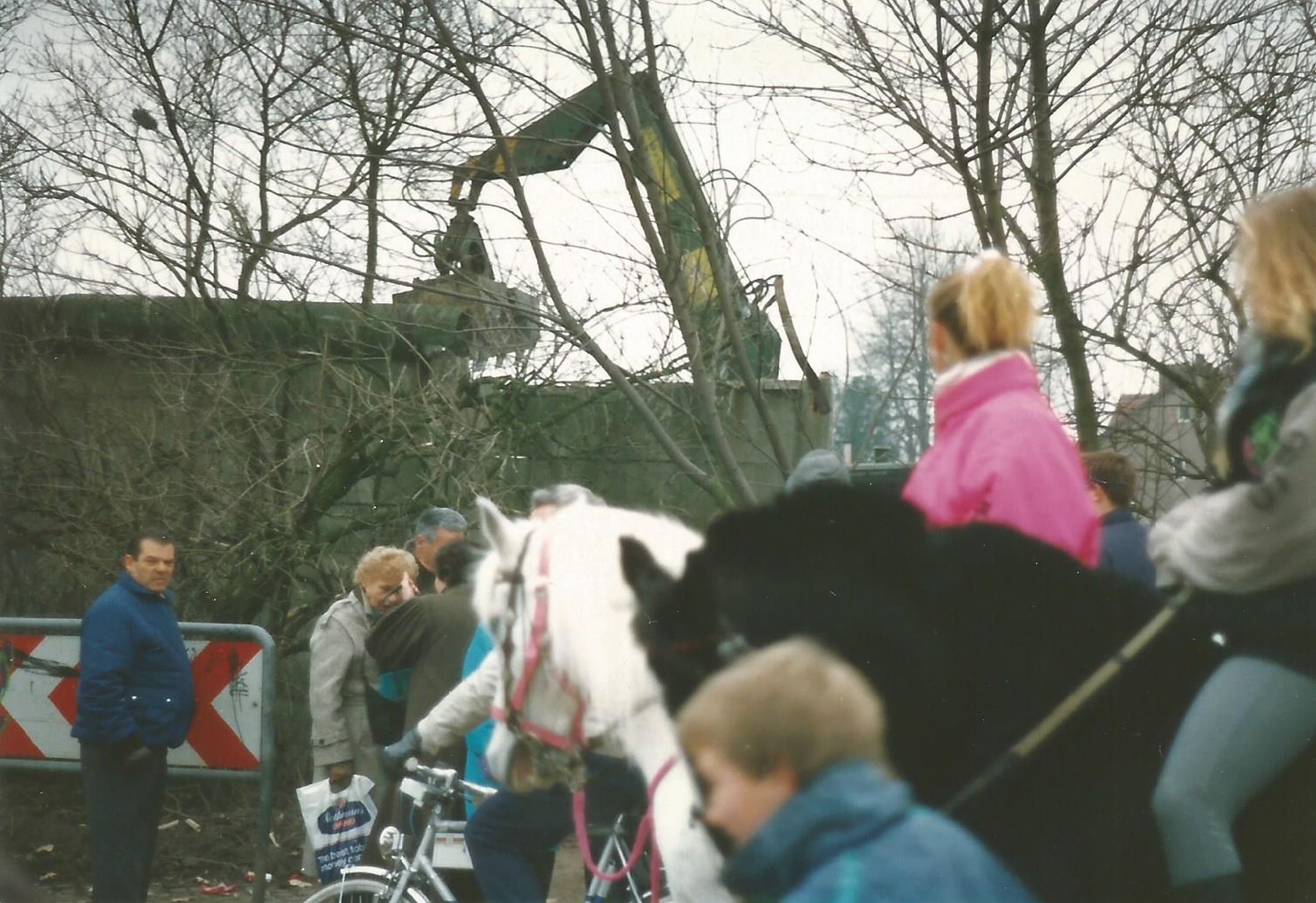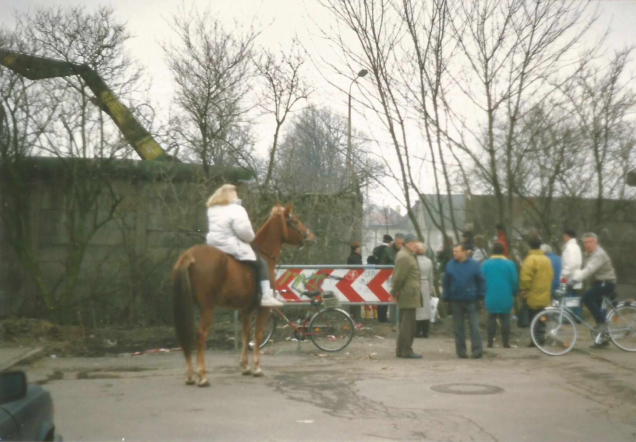 Queste immagini sono state scattate il 3 gennaio 1990 a Berlino e testimoniano l’abbattimento del Muro nella zona di Buckow Damm, a sud della città. L’autore è Peter Hagen, fratello di Joachim: grazie a loro un frammento del Muro (100 cm di altezza e 60 cm di larghezza) prelevato in quella zona fu poi donato ad Alteo Dolcini nell’ottobre del 1992. Si tratta di un documento fotografico inedito. La sequenza delle immagini si conclude con la collocazione attuale del frammento a Faenza, nella casa dove abitò Alteo Dolcini, ora casa Dolcini – Gonelli. L’ultima immagine presenta l’aspetto attuale di Buckow Damm.