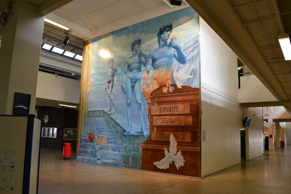E’ la più grande opera al mondo di questo genere artistico: 384 metri quadri, ognuno dei sei pannelli misura 64 mq, otto metri per ciascun lato. La targa sarà collocata nella sede universitaria di Augasse a fianco del pannello “Australien”, l’ultimo eseguito da Maitre Leherb a Faenza e inaugurato il 3 dicembre 1992. L’immagine della targa che sarà posata a Vienna precede quelle degli spazi universitari viennesi che accolgono il grande ciclo ceramico. In ognuno dei pannelli Leherb ha lasciato la sua firma e la citazione di Faenza.