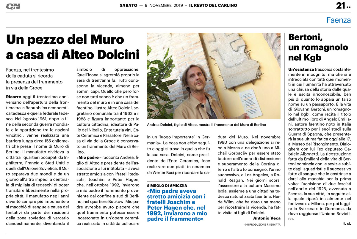 BERLINO 1989 – FAENZA 2019: UN FRAMMENTO DI STORIA NELLA CASA DI ALTEO DOLCINI