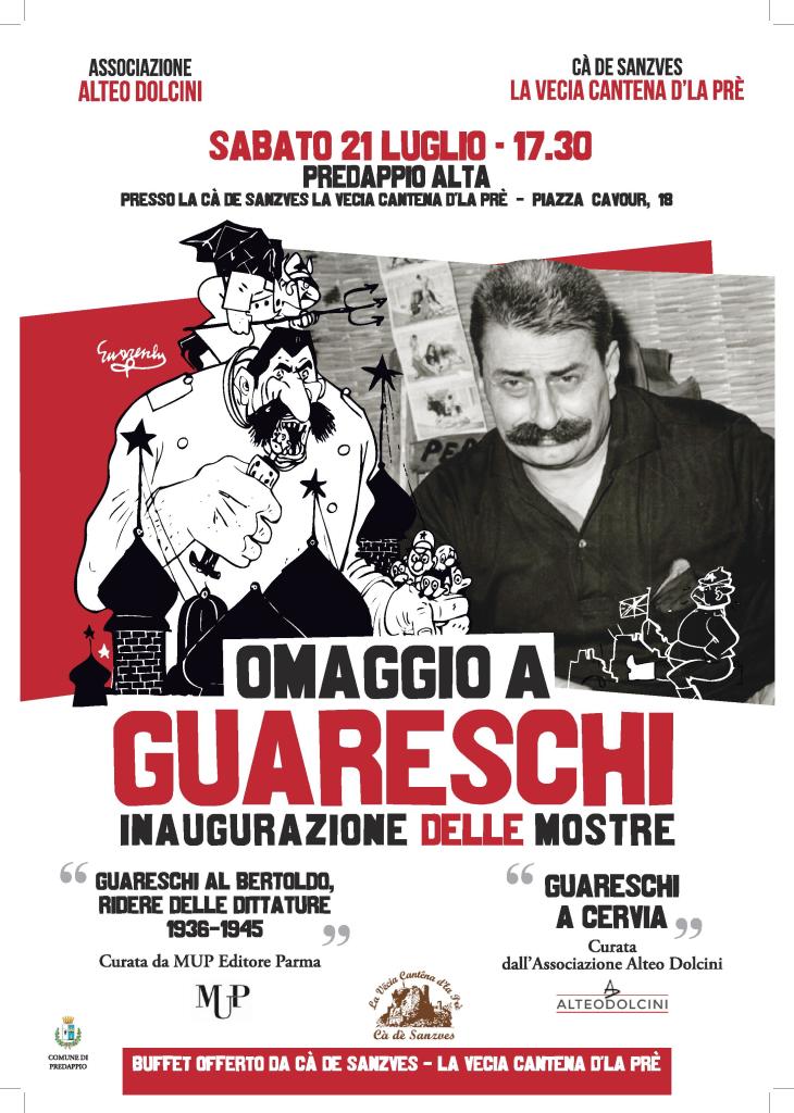 A cinquant’anni dalla morte di Giovannino Guareschi, avvenuta a Cervia il 22 luglio 1968, l’Associazione Alteo Dolcini dedica un doppio omaggio allo scrittore italiano più tradotto e più letto al mondo. L’autore della saga di Peppone e Don Camillo sarà celebrato a Predappio Alta nei locali espositivi della Ca’ de Sanzves – La Vecia Cantena d’la Pre’ in piazza Cavour 18. Due le mostre ospitate presso la Ca’ de Sanzves: “Giovannino Guareschi al Bertoldo,. Ridere delle dittature, 1936-1943” curata da MUP Editore Parma e “Guareschi a Cervia” realizzata dall’Associazione Alteo Dolcini.