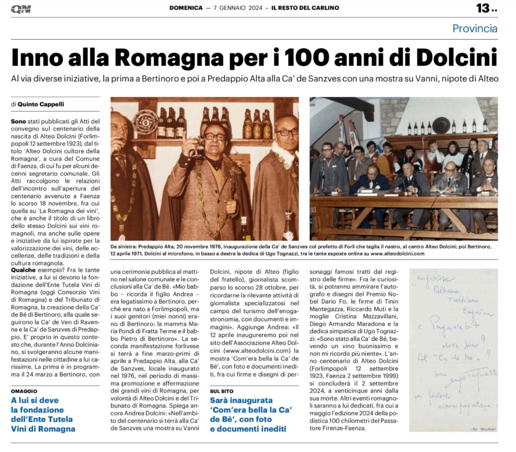 La rassegna stampa per il centenario di Alteo Dolcini su siti web.
