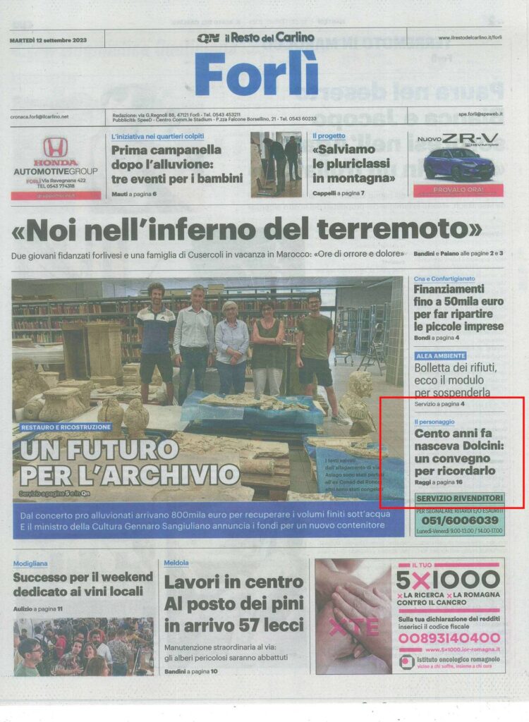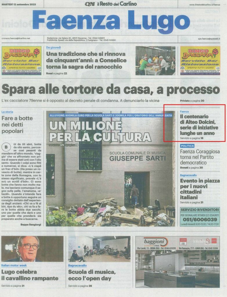 La rassegna stampa per il centenario di Alteo Dolcini su quotidiani e riviste: